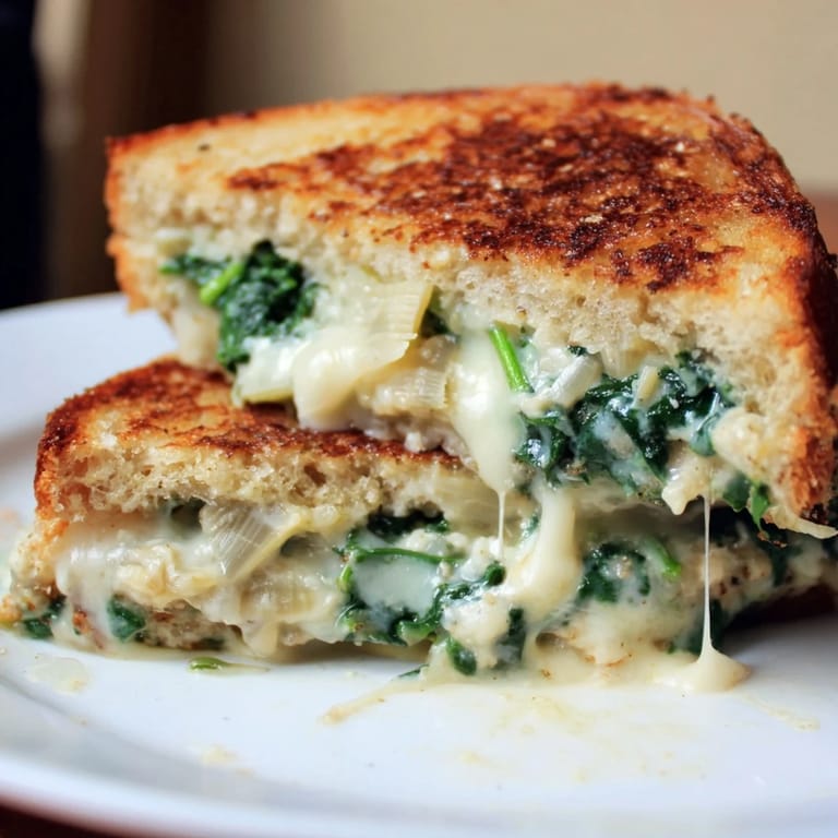 Save to Pinterest The smell of artichoke spinach dip has always made me think of game nights and crowded parties. One rainy Tuesday, I found myself staring at a tub of leftover dip in the fridge and a loaf of sourdough that needed using. Why not turn the appetizer into dinner? That first bite was absolutely ridiculous.