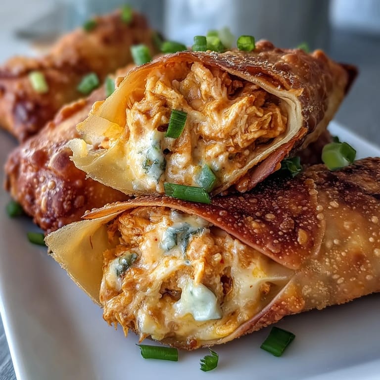 Save to Pinterest My neighbor brought a tray of these to a Super Bowl party, and I watched them vanish in under ten minutes. The combination of tangy buffalo chicken dip and that shatteringly crisp wrapper was so good I asked for the recipe on the spot. She laughed and said she'd been making them for years, swapping out the usual tortilla chips for egg rolls because her kids liked having something to hold. I went home that night already planning my own batch.