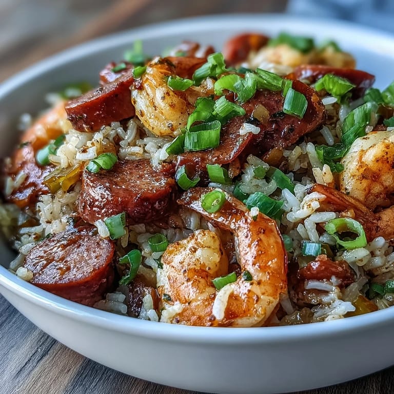 Save to Pinterest Cajun Dirty Rice is a soulful centerpiece of Southern Louisiana cooking, bringing together the smokiness of andouille sausage and the sweetness of succulent shrimp. This hearty meal features fluffy rice tossed with aromatic vegetables and bold Cajun spices for a comforting experience in every bite, perfect for a family dinner that feels like a celebration.