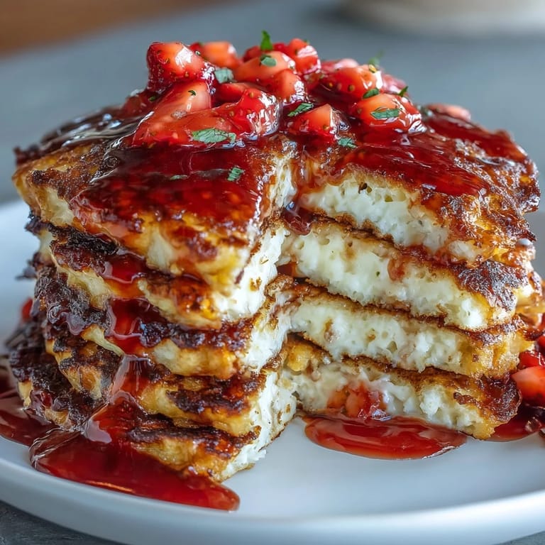 Save to Pinterest My sister called me on a lazy Sunday morning asking what I was making for breakfast, and I found myself staring at a container of cottage cheese that needed using. Instead of letting it sit in the fridge another week, I decided to turn it into pancakes, and something clicked the moment I whisked those first eggs together. The batter came alive with a texture I'd never achieved before, and when the first pancake hit the griddle, the kitchen filled with this buttery warmth that made her ask if she could come over immediately. By the time I pulled fresh strawberries from the farmer's market haul and simmered them into syrup, I knew I'd stumbled onto something special.