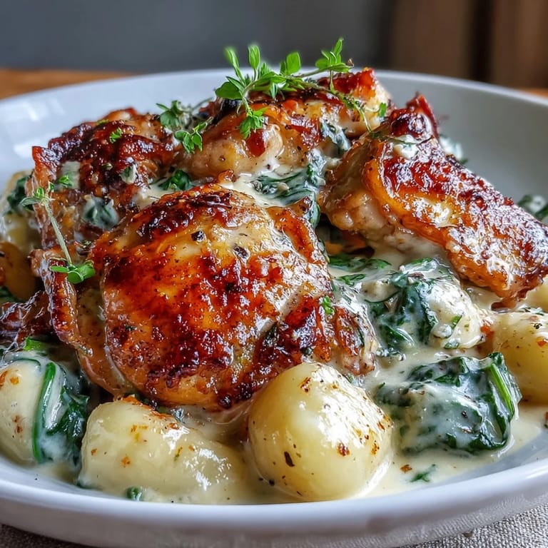 Save to Pinterest There's something almost magical about the moment when a skillet comes out of the oven and the whole kitchen fills with the smell of garlic, cream, and melting Parmesan. I discovered this dish on a Tuesday night when I was craving something substantial but didn't want to dirty more than one pan, and honestly, it became the kind of meal I now make whenever I need to feel like I've actually cooked something impressive. The chicken thighs stay incredibly tender while the gnocchi absorbs all that silky sauce, and somehow it all comes together in under 45 minutes.