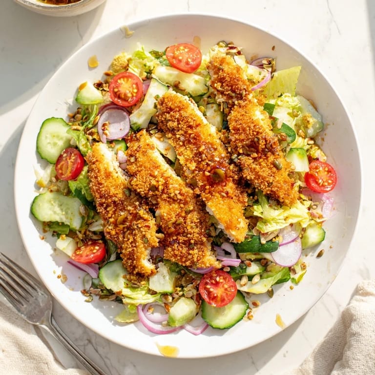 The magic happens when you serve this immediately, with the chicken still warm and that honey sticky-glossy. I have learned to have all my salad components ready before I start frying, because nothing kills the vibe faster than cold crispy chicken that lost its crunch ten minutes ago.