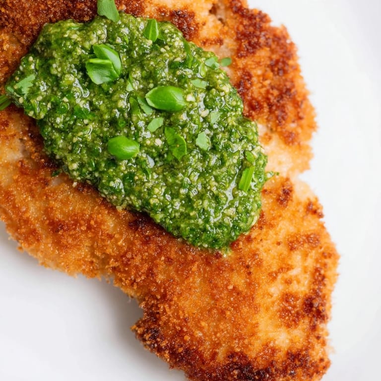 Save to Pinterest The smell of garlic and basil hit me before I even opened the jar of pesto, and I knew this chicken was going to be different. I was tired of bland weeknight dinners, the kind that fill you up but leave no impression. So I grabbed what I had, panko, Parmesan, a little jar of green magic, and decided to see what happened. The sizzle when the first cutlet hit the hot oil was so satisfying I actually laughed out loud.