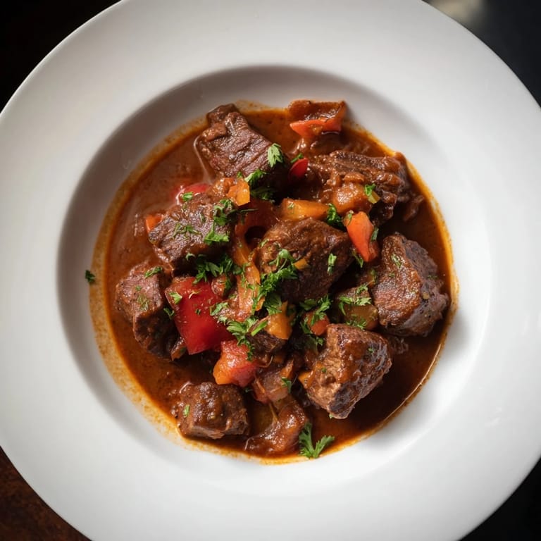 Save to Pinterest A hearty, comforting Hungarian-inspired stew featuring tender beef simmered with sweet paprika, peppers, and tomatoes, served with warm, crusty bread—perfect for a crowd.