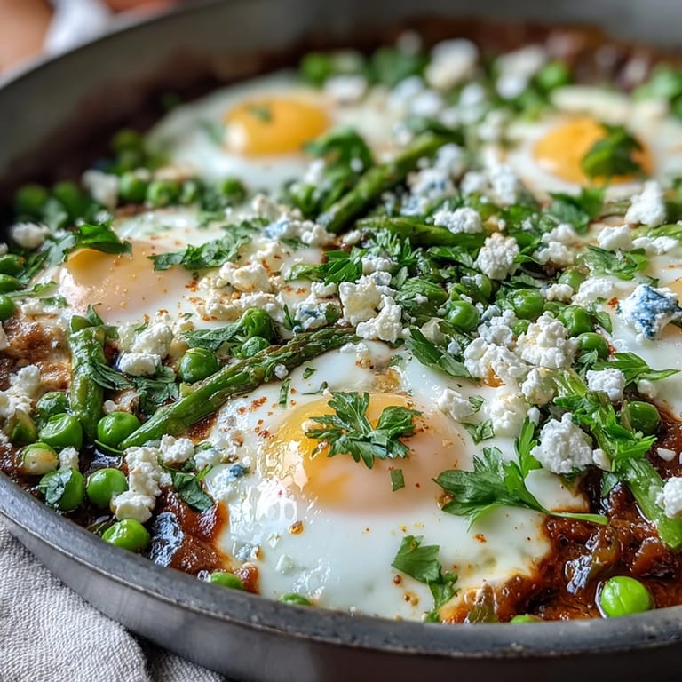 Save to Pinterest Spring arrived late that year, and I was standing in the farmers market practically vibrating with impatience for fresh peas. When I finally spotted them, I grabbed a bunch along with asparagus so tender it practically bent itself, and something clicked—why not layer all these green treasures into a shakshuka? The result was this glowing, spiced tomato sauce cradling vegetables at their absolute peak, with eggs nestled in like they belonged there all along.