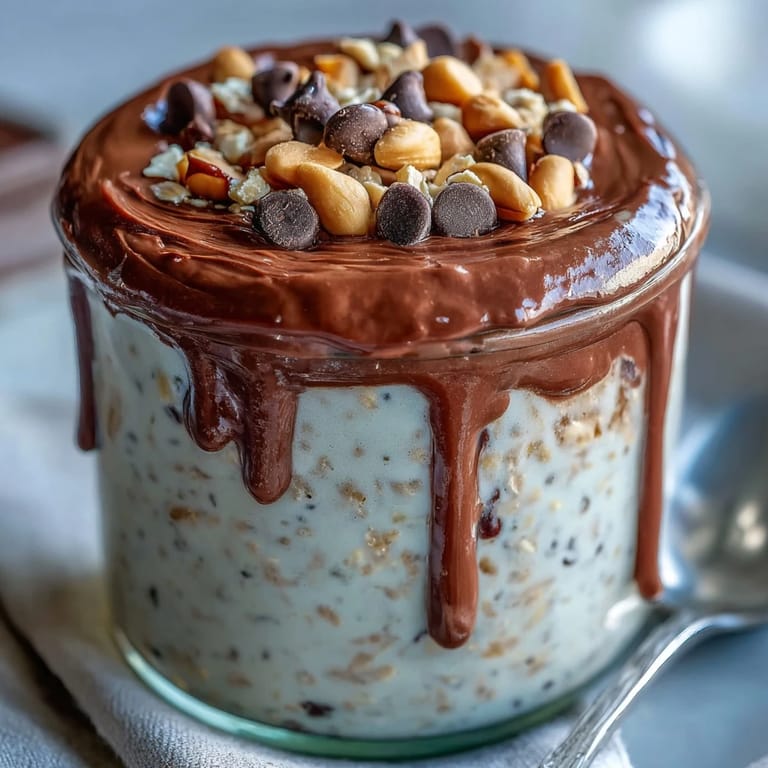 Save to Pinterest There's something almost luxurious about waking up to breakfast that's already waiting for you, especially when it tastes like a peanut butter cup in oat form. I discovered these overnight oats on a chaotic Tuesday morning when I'd overcommitted myself and had exactly zero time to cook anything. What started as a desperate attempt to eat something substantial became my favorite way to trick myself into thinking dessert is acceptable at 7 AM. The creamy peanut butter base, the silky cocoa ganache swirled through the middle—it felt indulgent without any guilt attached. Now I make them whenever I need to feel a little more put-together than I actually am.