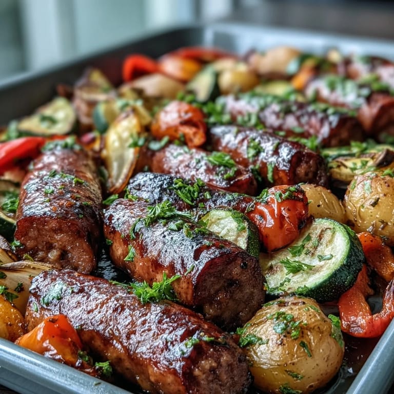 Save to Pinterest There's something about a sheet pan dinner that feels like a small victory on a Tuesday night when everyone's hungry and you've got maybe thirty minutes before chaos ensues. I discovered this smoky sausage and vegetable combination purely by accident, actually—I had a pack of smoked sausages that needed using and a crisper drawer full of peppers that were about to turn sad. Tossing them all together with some spices and roasting felt like the kind of thing that shouldn't work but absolutely did, especially once I dipped warm naan into those caramelized corners.
