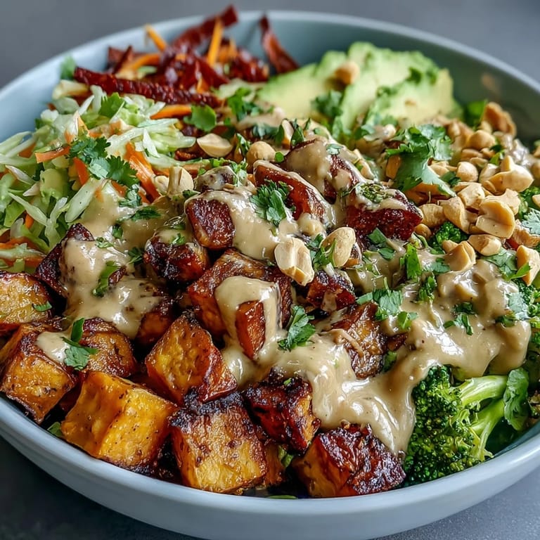The genius of a Buddha bowl lies in balance: warm and cool, crunchy and soft, savory and sweet all in one place. The roasted sweet potatoes provide earthiness, the raw vegetables keep things fresh and bright, and that peanut sauce ties it all together like a warm hug. Every spoonful gives you multiple textures and flavors, which is why eating it never feels boring—even on your third bowl that week.