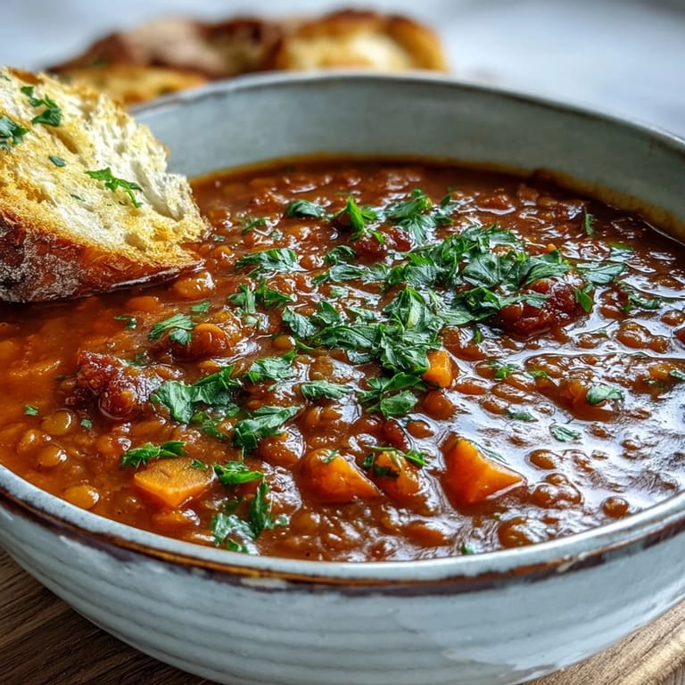 Save to Pinterest There's something about a pot of tomato lentil soup simmering on the stove that turns a regular Wednesday into something warmer. I discovered this recipe on a chilly afternoon when my fridge held nothing but half an onion, a can of tomatoes, and a forgotten bag of lentils shoved in the back. What came together was so comforting, so utterly satisfying, that I've been making it ever since—tweaking it slightly each time, but always returning to those same honest ingredients.