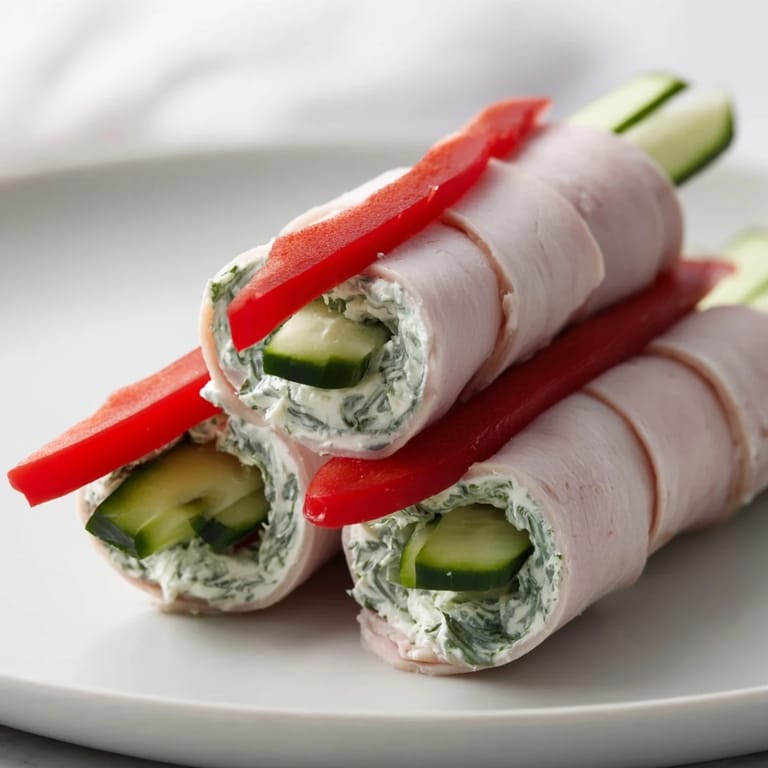 Save to Pinterest Tender turkey slices rolled and stacked for a simple, protein-rich snack or appetizer. Perfect for quick lunches or party platters.